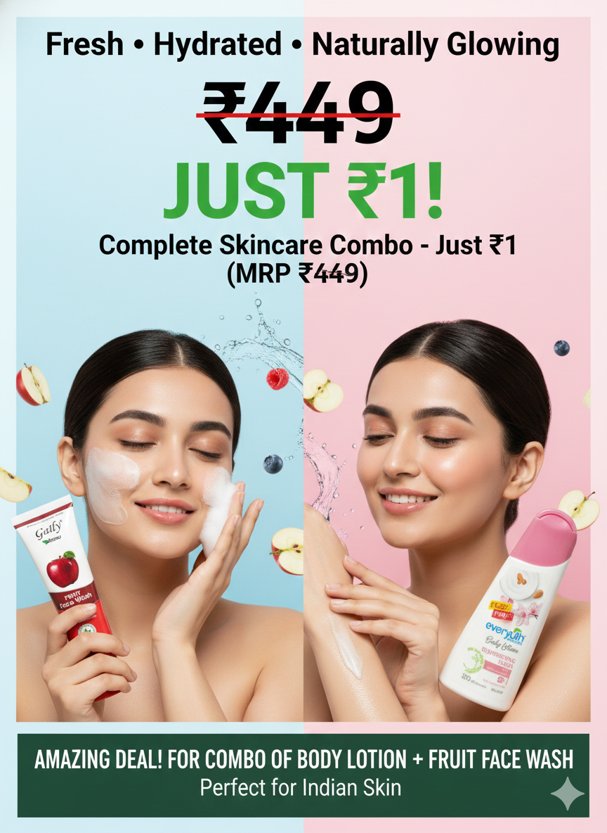 The Gaily Aroma Fruit Face Wash gently cleanses the skin, helping reduce tan and signs of sun damage while keeping your face fresh and oil-free. Paired with the Everyuth Naturals Rejuvenating Flora Body Lotion, this combo delivers 24-hour moisturisation with the goodness of almond milk, leaving your skin nourished and smooth.