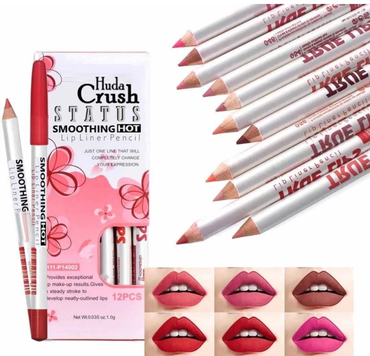 Huda Crush Smoothing Hot Super Mat Lip liner Set of 12 - MultiColour